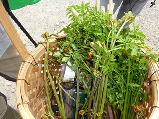 【左】ホタルガの幼虫 【右】山菜…ワラビ、ミツバ、セリなどの収穫