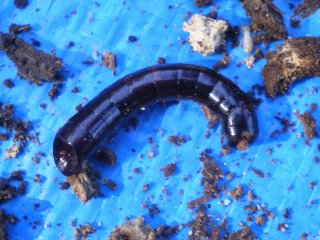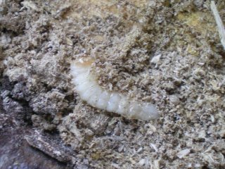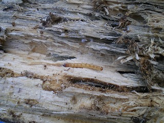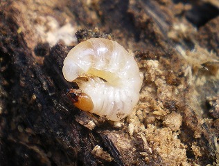 【左】カミキリムシの幼虫 【中】ソウムシ?の死がい 【右】キマワリの幼虫