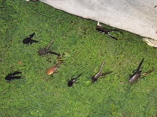 ヘイケボタル、セマダラコガネ、ユミアシゴミムシダマシ、コカブトムシ、セアカヒラタゴミムシ、ドウガネブイブイ、クロコガネ類、ゴモクムシ類、オオアトボシアオゴミムシ、ナミテントウ、クシコメツキ類、アオバネサルハムシ、トビイロマルハナノミ、アオイラガ、コブノメイガ、ドクガの仲間、ハネナガヒシバッタ、ミミズク、コガシラハネカクシ類、キンバエ類、ガガンボ、フタモンホシカメムシ、アオヒゲナガトビケラ、ルリゴミムシダマシ、  【観察会の様子】