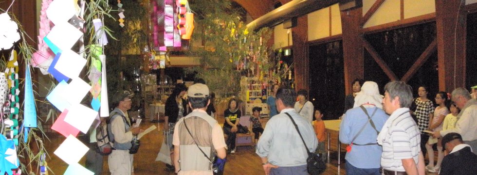 七夕飾りの下で本日の見どころを紹介