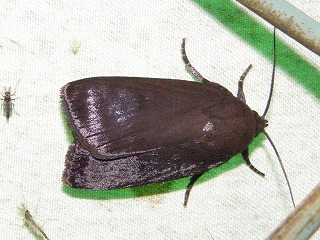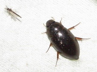 【左】クロコノマチョウ(灯火観察では初登場と思います) 【中】イネミズゾウムシ(北アメリカ原産の外来種でイネの害虫です) 【右】ヤチスズ