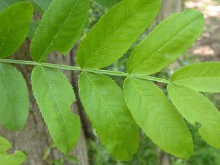 シナサワグルミの葉。葉軸にぬるでのような翼あり。