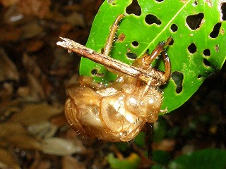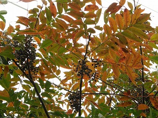【左】ナンキンハゼの葉と実 【中】ツタ 【右】アブラゼミの抜け殻
