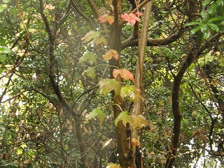 マコモ、アケビ、アオキ、イヌビワ、クロガネモチ、キカラスウリ、ヤブガラシ、ナワシログミ、ハゼノキ、ツタ、スズカケ、マテバシ、ナンキンハゼ、トウカエデ