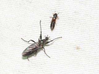 【左】アオバアリガタハネカクシ。刺されるとみみずばれになります。      【中】サビキコリ       【右】キマダラカミキリ