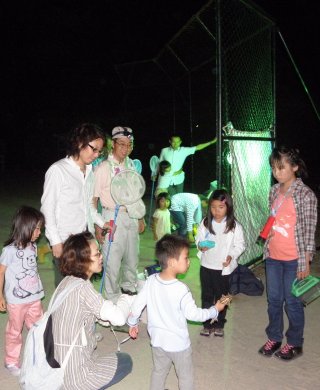 公園を抜け、木立に囲まれた大同グランドへ向かう。真っ暗な空へ抜けていく軽快なエンジン音が響く中、水銀灯の青い光に誘われた虫たちが我々を待っていた。