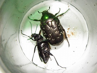 【左】コメツキムシの仲間         【中】セマダラコガネ         【右】ハネカクシの仲間の群れ