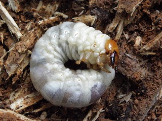 【左】大人も夢中 【右】クワガタの幼虫が出てきました。