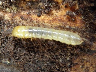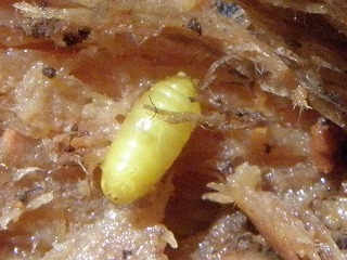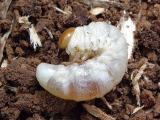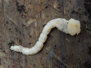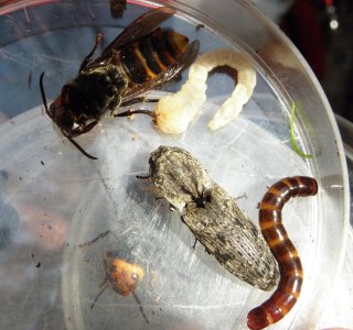【左】クワガタの仲間(小) 【中】松の木に入っていたタマムシ 【右】キマワリの幼虫