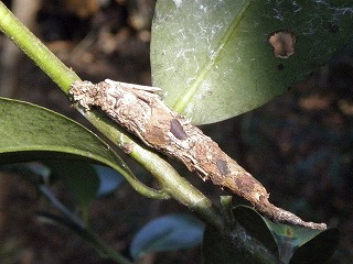 【左】ヒゲジロハサミムシ 【中】モチノキの茎に付いたミノムシ 【右】19 アリ