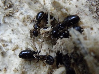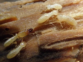 【左】ヤマトシロアリ(頭の長いのが兵隊アリ、丸いのが働きアリ?) 【中】越冬していたコガタスズメバチの♀、女王蜂) 【右】イオウイロハシリグモ?