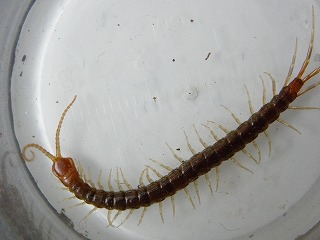 【左】イシムカデの仲間 【中】アオズムカデ(オオムカデでドクが強い) 【右】アオズムカデの大きな個体