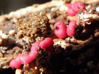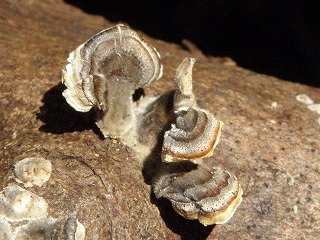 【左】粘菌のアカフクロホコリ? 【右】カワラタケ(ガン細胞の増殖を抑える作用があるといわれる)