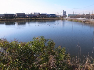 阿久比川河口:アオサギ、カワウ、オナガガモ、ヒドリガモ、ガルガモ、ダイサギ、ケリ、コガモ