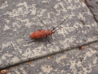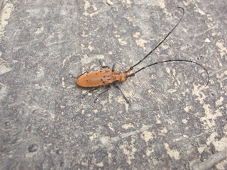 と知れました。このカミキリ、鞘翅の黒い斑点模様が左右不対照というちょっと変わり者なんだそうです。