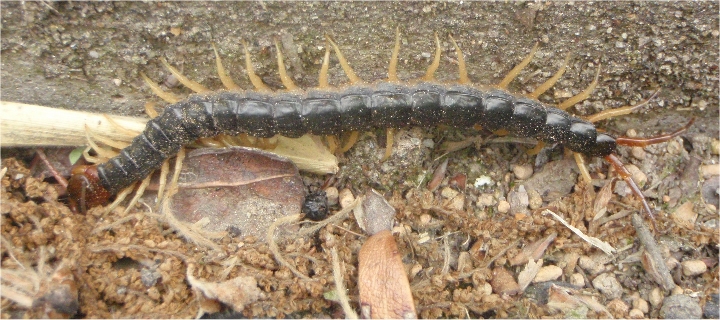 【上】百足(ムカデ)の足の数を皆さんも数えて下さい。私たち(指導員)も久しぶりに一生懸命数えました