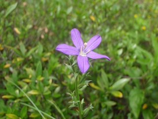 【左】落ちてきた(ホシベニカミキリ♂) 【中】ヒナキキョウソウ(開花) 【右】ヒナキキョウソウ(つぼみ)