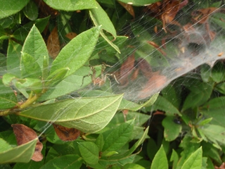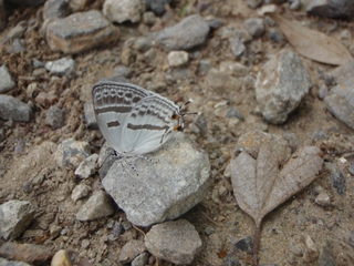 【左】クサグモ巣がたくさんあったがすべてトンネルから出ていた 【右】ミズイロオナガシジミ