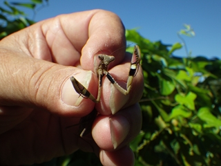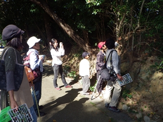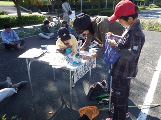 例年通りのコースを歩きながら観察しました。途中、林内の自然道も歩きましたが期待した昆虫との出会いはありませんでした。集合場所に戻ってから、9月下旬に集めておいたアブラゼミとクマゼミの脱け殻で「どちらの殻」「♂(オス)か♀(メス)か」の見分け方やりました。時間をかけてやったのでよく分かったようでした。