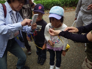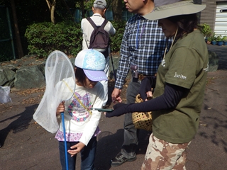 しっかり観察できたというのは、つかまえたアサギマダラを見て「メス(♀)だね…」と指導員が言うので「オス(♂)とどこが違うの」と言うことになり、それを子どもが確認することができたからです。偶然、リーフレットのアサギマダラがオス(♂)だったので、それと比べることができたと言うわけです。
