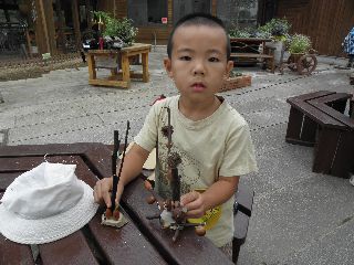 【左】熱心に取り金でいます。 【中】おいしそうでしょう。 【右】僕も、傑作できました。