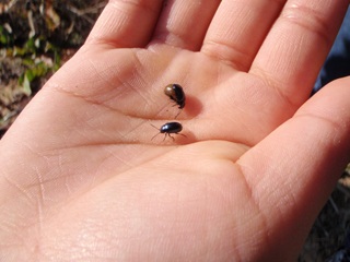 【左】ヨモギハムシ(ヨモギの葉に止まっていました) 【右】モリチャバネゴキブリ幼虫(陽だまりの落ち葉の下にいました)