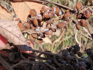 マンリョウ ヤブコウジ ジャノヒゲ 、ヌルデ、スズメウリ ヒメオドリコソウ、オオイヌノフグリ