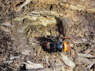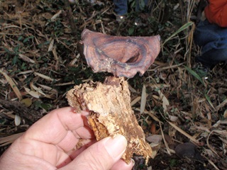 【左】ヌルデの実…なめると塩かっらい味がする 【中】アシグロタケ? 【右】朽ち木の中にいたコガタスズメバチ