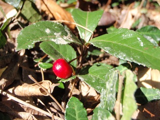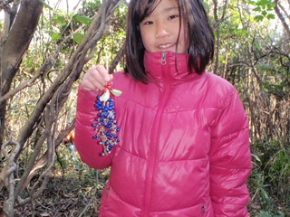 【左】林の中の朽ち木も探したけど、今年は余り見つからなかった 【右】ナガバジャノヒゲとマンリョウの実