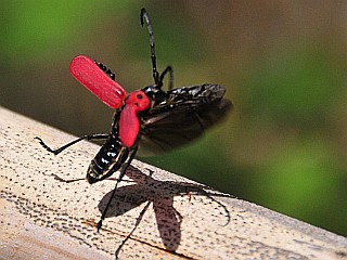 【左】ベニカミキリ 【中】猛威をふるう竹 たけだけしい 【右】ナナホシテントウ
