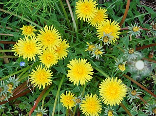 モウソウチク+タケノコ、タンポポ、ハルジョオン 、オニタビラコ、