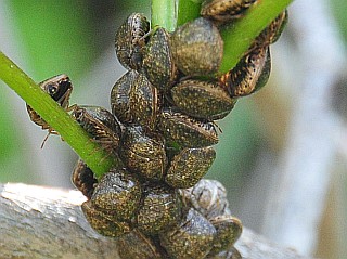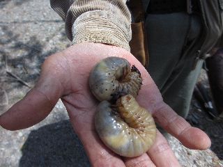 【左】カブトの幼虫の集団自殺?雨水が原因か