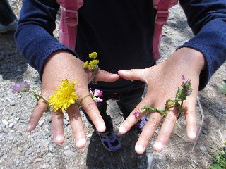 【左】タンポポ 【中】冬眠から目覚めたバッタ?? 【右】ハルジョオン