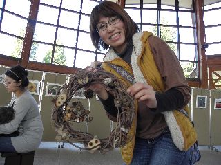 天気はよいのだけれど風が強くて小寒い朝。公園には紅葉めあてに散歩するシルバーや親子連れがちらほら。今日は子どもだけでなく大人連れの参加者もあった。今年も猛暑のせいかドングリ見本苑のドングリの実は少ない。あまり拾えないかもと思いながらもまずは秋の木の実を拾おうと出発した。アラカシのまだ青さも残る実が拾え、ホッとしながらいつもと違うルートを通るとクヌギの大きな実がざくざく。子どもならず大人までもが歓声を上げて拾う。やはり、どんぐりは何か魔法をもっているのかもしれない。ハクウンボクには実がついていなかった。去年参加して楽しかったのでと、参加された親子連れもいたり、工作の様子を見て工作だけ参加という親子や、終わりごろに参加したいのだがと来られ、来年や他市町の宣伝をするひとコマも。