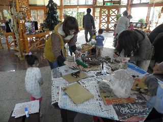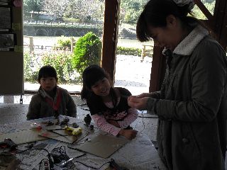 今年の工作は模本無しでスタート。はじめからオリジナルで、大胆などの作品も世界に一つだけのステキなものができあがった。子どもの年齢が小さかったためか今回は子どもらよりは大人が楽しんで作っていた。 (記・竹内秀 )