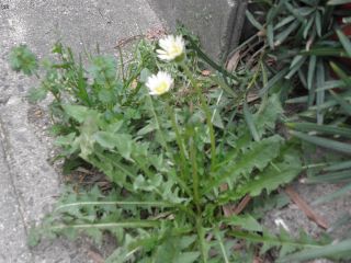 【左】温暖化か?白花タンポポ 【中】受粉すると雄しべの軸がピンクになります 【右】イチョウの雄花の芽吹き。例年より早い