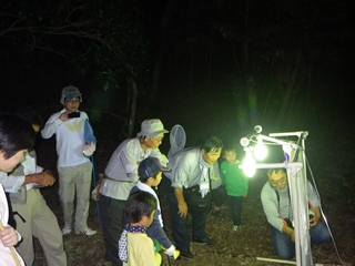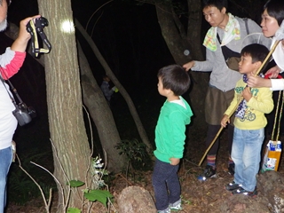 【左】始めのお話 【右】すばらしい昆虫大好きファミリー。ナイトハイクの一場面