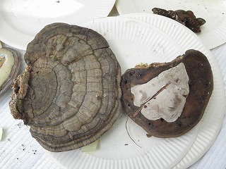 【左】オオクロニガイグチ 【中】ヒイロタケ 【右】マンネンタケ