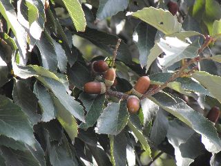 【左】キノコの見方、採集の仕方の話 【右】コナラがたわわになっています