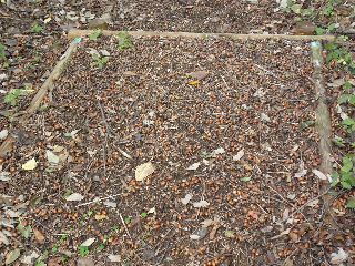 台風27号28号の迷走翌日。朝方にかけて大雨の予報に今日は雨のため中止かと思って集合場所に行くと予定通り参加者ゼロ。小雨模様の中、富士見台の様子だけ見て帰ろうか、と3人で車から外へ。東浦高校の校庭も少し色づき始めていた。階段回りのツリガネソウを覆いそうな雑草や雑木の枝を払っているうちに西の方から青空が見えだしてきた。アケビだけでも見て帰ろうか、とだれからともなく言い出し、そういえば、東和荘の回りがよいということだからそこへ行ってみようと、来年度の観察地の下見もかねて出かけた。東浦町が散歩道をかねて飛山池の周り半周を整備したところで、いい感じだから来年はここも観察地に加えようということになった。ドングリが絨毯の用に落ちているところやアケビや、雨後のキノコ類も見られ、駐車場や動線を考えながらの下見となった。ただ、残念なことに、観察路が途中で切れていることである。今後、池を一周できるように整備していただきたいと思った。(記・竹内秀 )