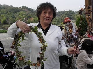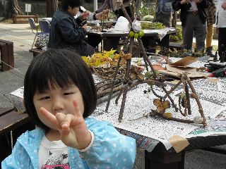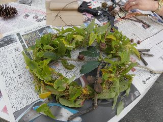 【左】親子で工作。 【中】名古屋から参加してくださいました。竹の枝をつかってリース 【右】ママの手元に注目!