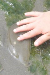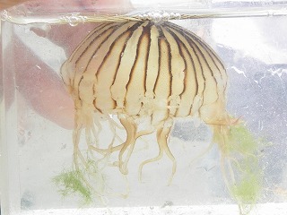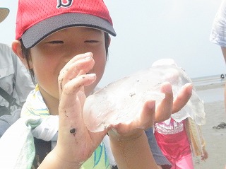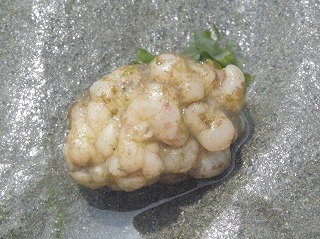 【左】ナミイソカイメン? 【中】アカクラゲ 【右】ミズクラゲは刺さないよ