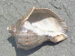 【左】ウノアシ 【中】海岸に落ちている貝殻 【右】オキナガイ