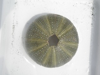 【左】ウンモンフクロムシに寄生されている。 【中】60 【右】バフンウニの殻
