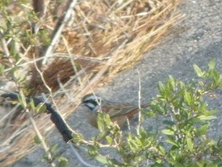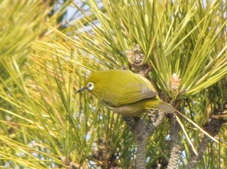 護岸堤の内側、灌木の間にメジロが戯れていて、ジョウビタキも現れた。