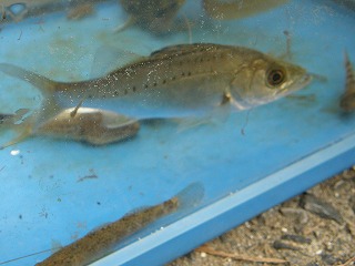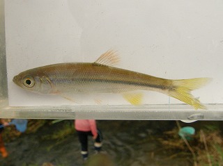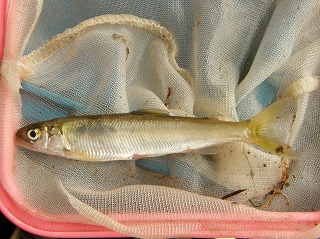 アユ、オイカワ、カマツカ、スズキの子(ヒラスズキ?)、タイリクバラタナゴ、ヌマムツ、フナ、ゴクラクハゼ、マドジョウ、カラドジョウ?