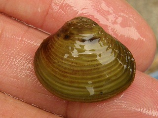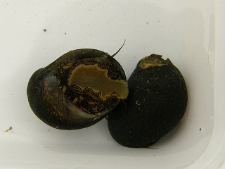 【左】シジミ 【中】サカマキガイ 【右】カワウの死骸