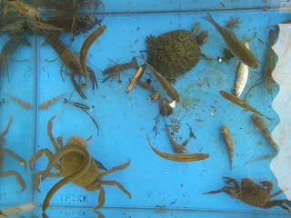 トノサマガエル?、ニホンイシガメ、ミシシッピーアカミミガメ