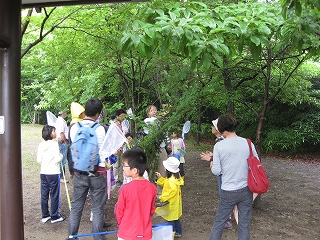 雨の降りそうな梅雨の1日でしたが、たくさんの親子連れの参加者がありました。セレトナの会議室でプロジェクタを利用して40分ほど、カブトムシ・クワガタなどを中心にこの時期見られる昆虫や外国産昆虫との雑種や温暖化の影響などを解説。その後、室外に出て森や草原などで採集と観察を行いました。エゴノキの虫こぶでエゴノネコアシアブラムシを観察、森の中を進み、平戸池の草原では雨上がりで昆虫は少ないものの、子供たちの熱心な採集で思った以上の虫が集まりました。その後、室内で採集品や持参したカブトムシのサナギ・スズムシの子供など虫合わせをしました。(記:板倉)