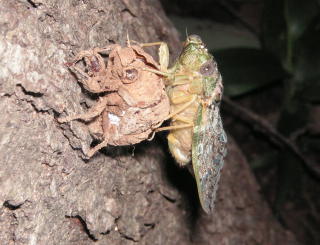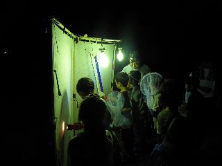 【左】燈火にはどんな虫が集まっているかな。  【右】ニイニイゼミの羽化が始まりました。